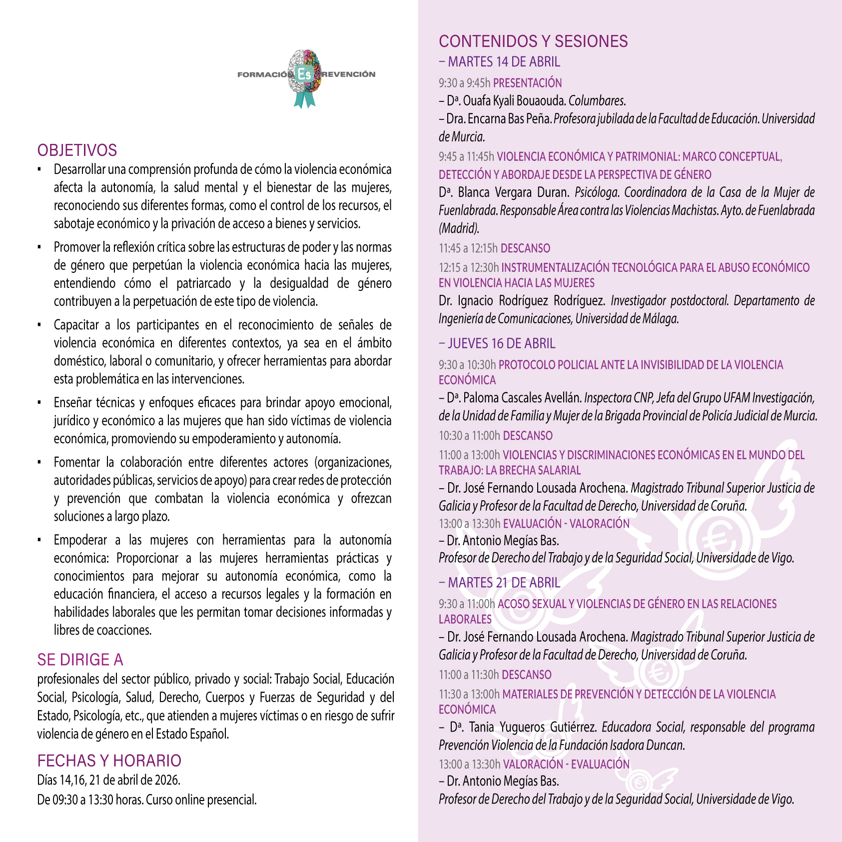 CURSO PREVENCIÓN E INTERVENCIÓN EN VIOLENCIA ECONÓMICA HACIA LAS MUJERES